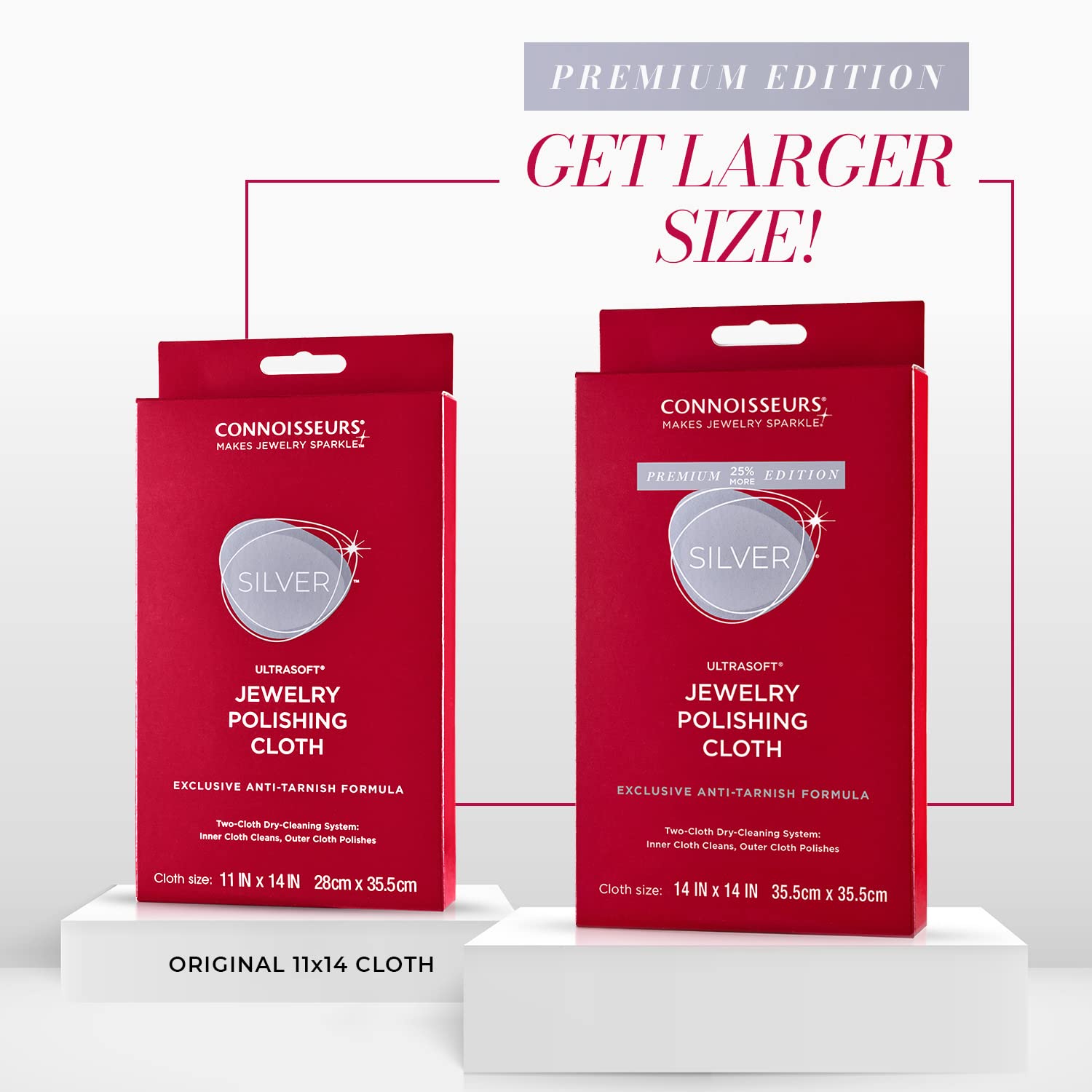 CONNOISSEURS Premium Edition Extra Large Polishing Cloth for Silver Jewelry - Ultrasoft Fabric with Anti-Tarnish Formula - 14x14 Inches